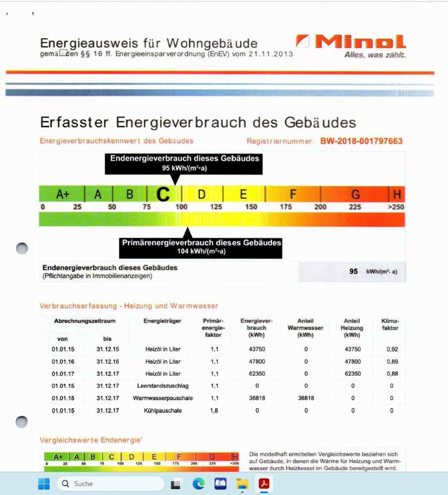 | Wert des Endenergiebedarfs: | 95 |