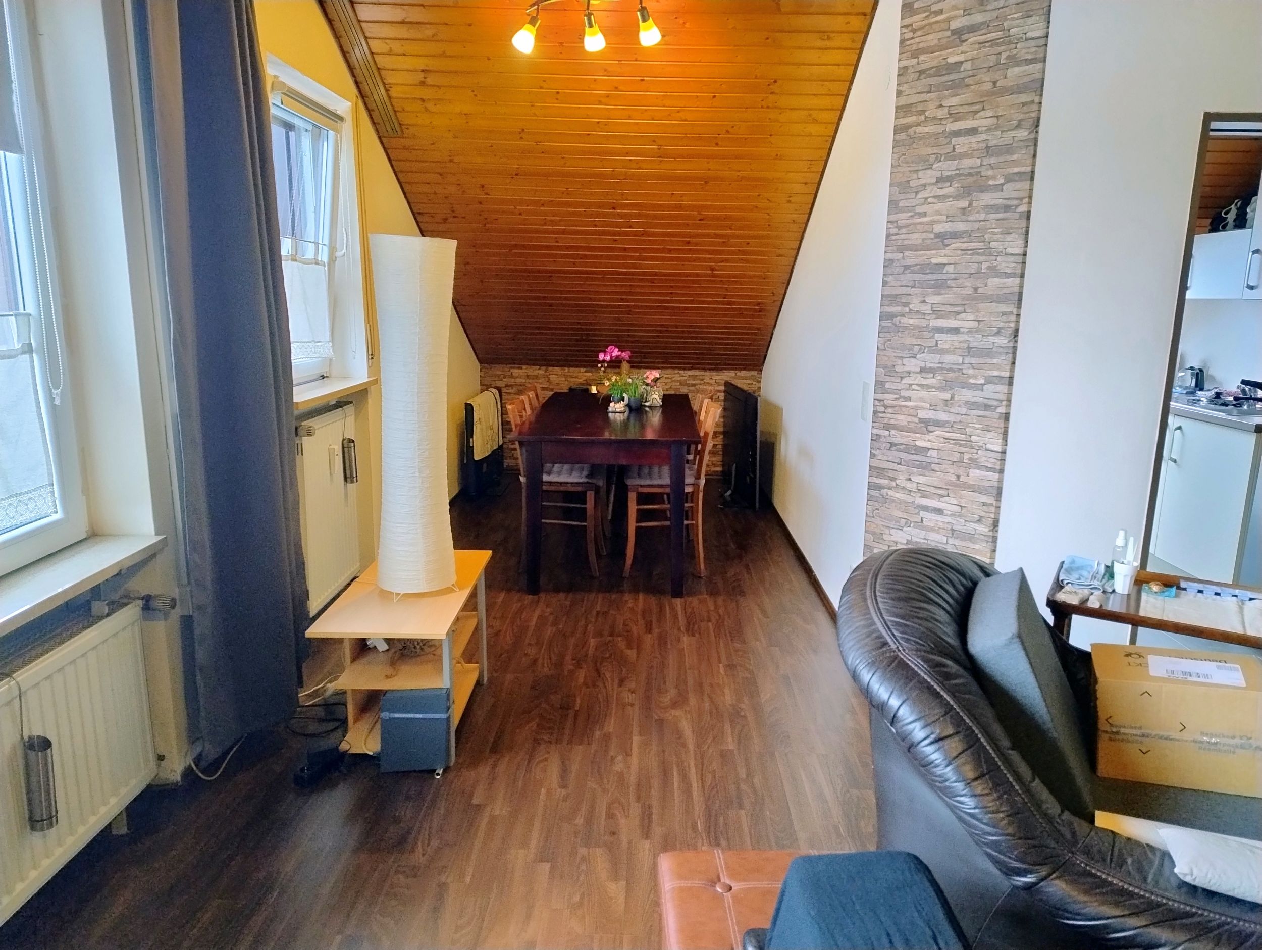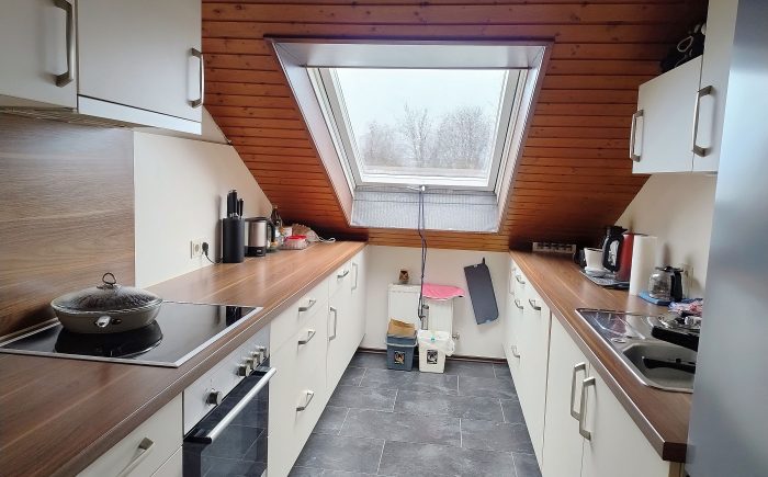 Die Wohnung befindet sich im Dachgeschoss – Sie verfügt über einiges mehr an Bodenfläche als die Angabe in DIN angibt.
