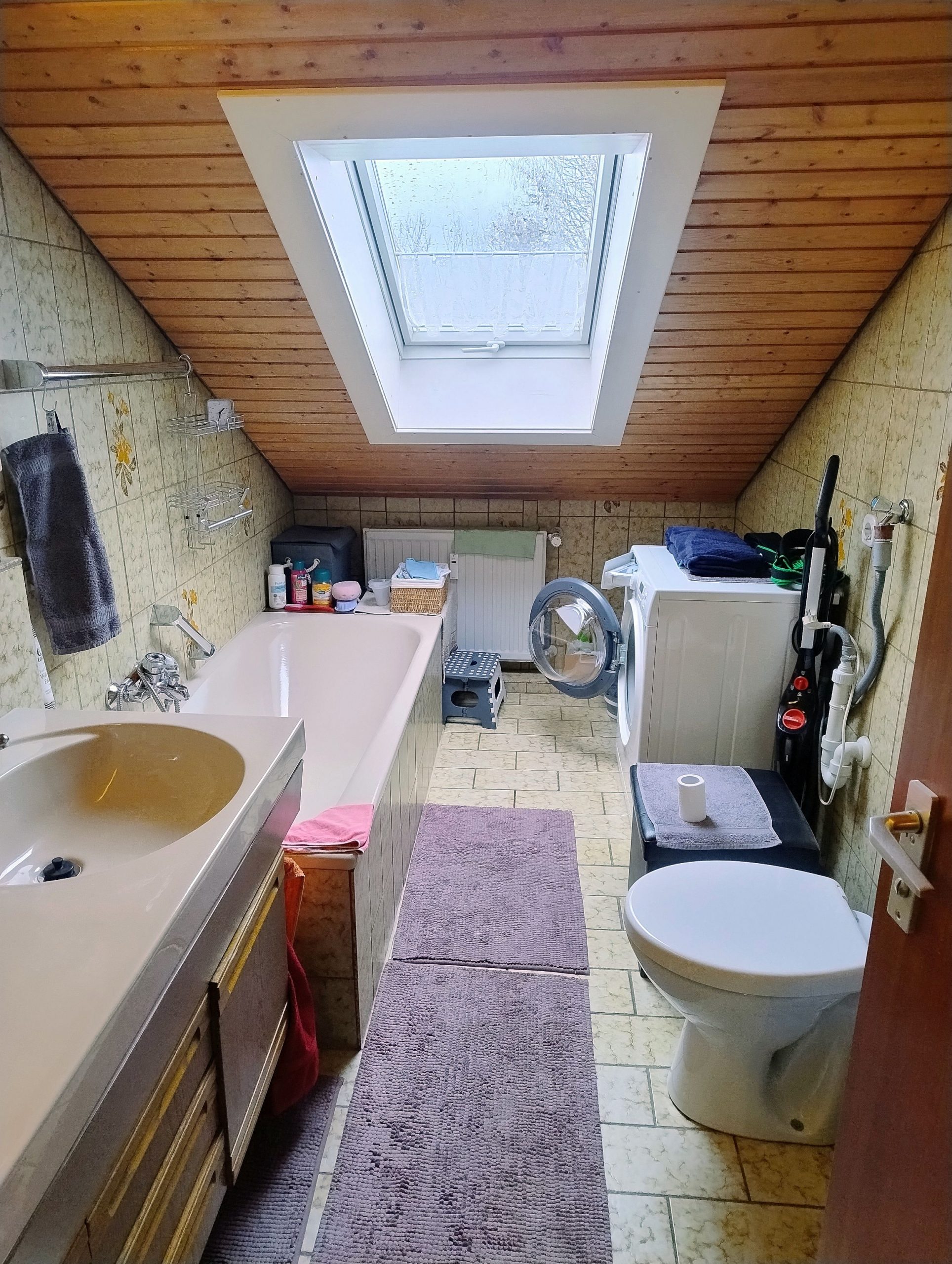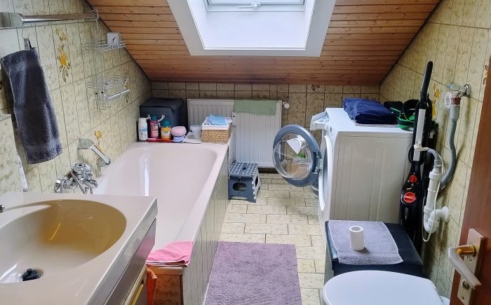 Familienfreundlich sind die zwei Bäder – das große Tageslichtbad mit Wanne und Waschmaschinenplatz und ein kleines Duschbad mit WC.